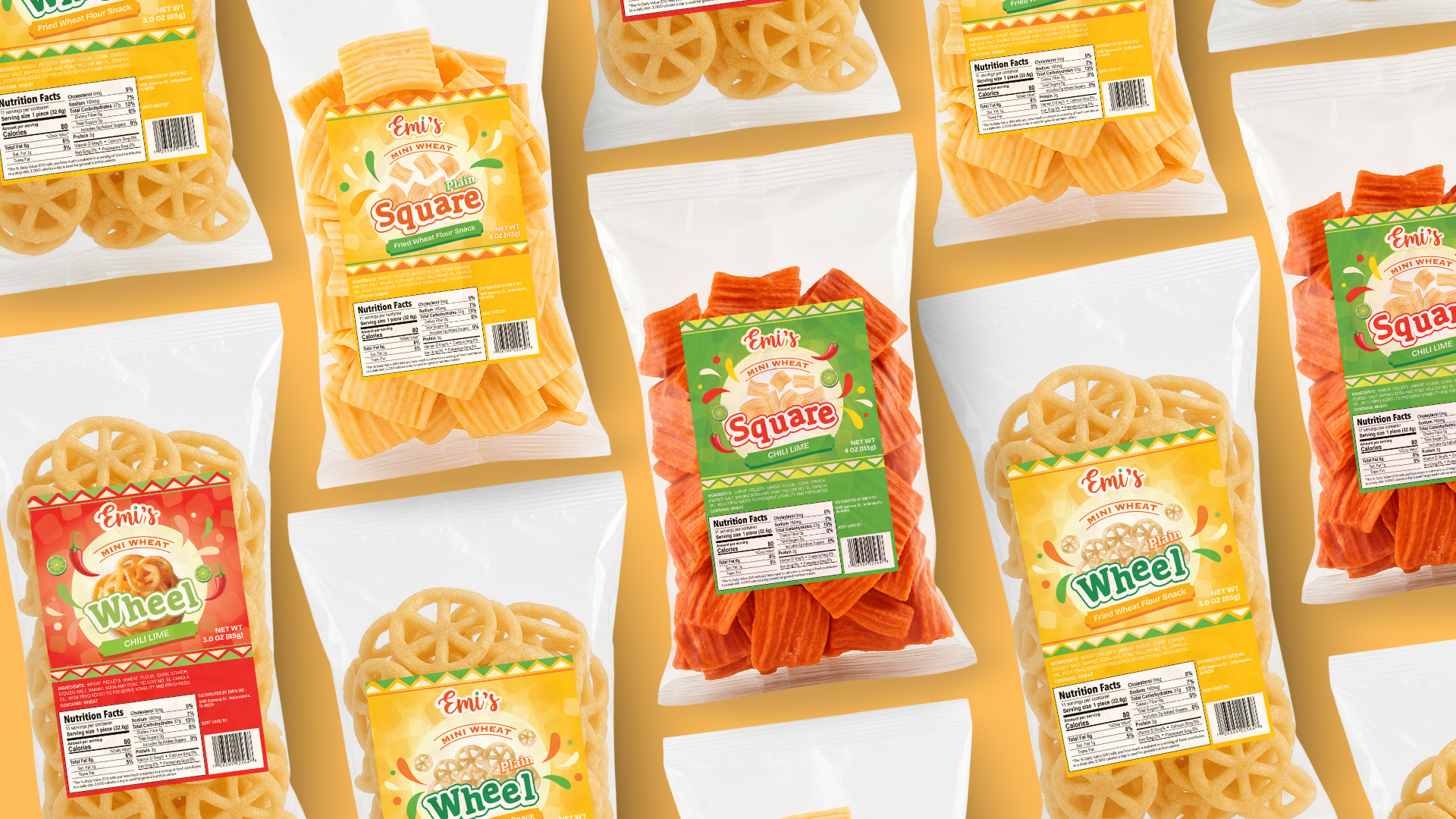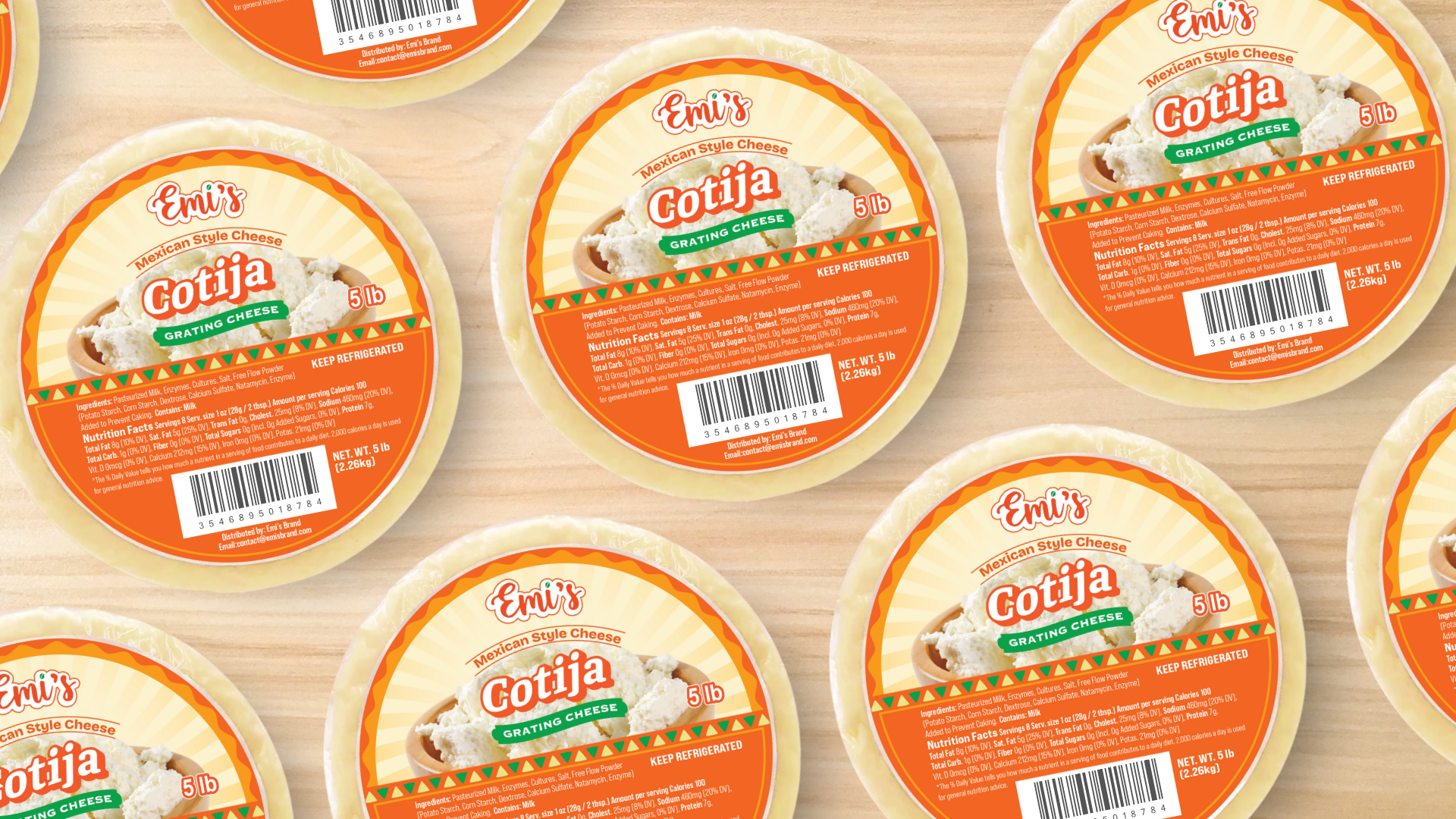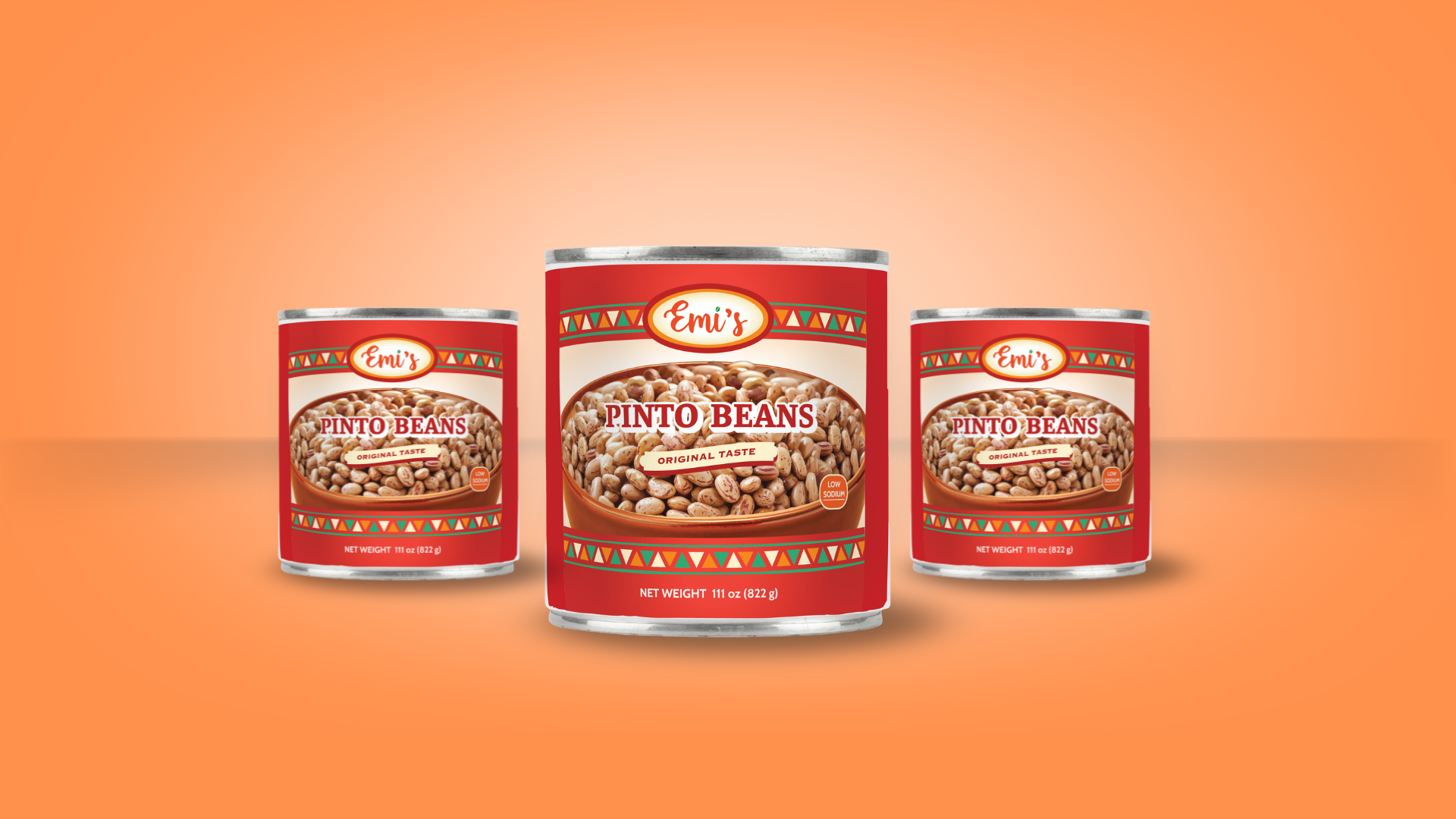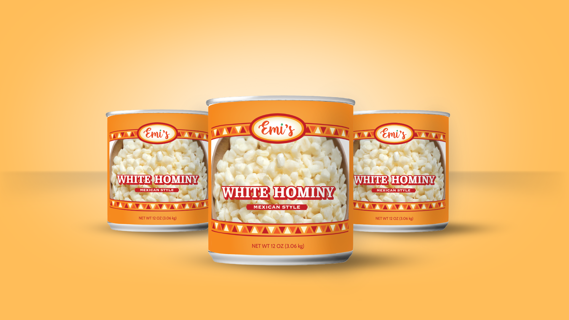 La sección de Packaging presenta una serie de etiquetas diseñadas para los productos alimenticios de Emi’s Brand. La colección incluye empaques para enlatados, snacks, lácteos como quesos y aceite de cocina. Cada diseño combina funcionalidad con una estética limpia y atractiva, evocando la tradición y raíces de la marca pero con un toque moderno que conecta con los consumidores actuales.