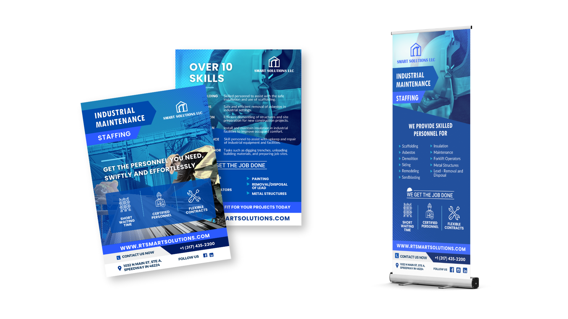 This is a selection of our marketing materials, showcasing the range of our print design work. It includes flyers, posters, signage, roll-ups, banners, catalogs, and stickers—each crafted to strengthen brand presence and communicate effectively with audiences.