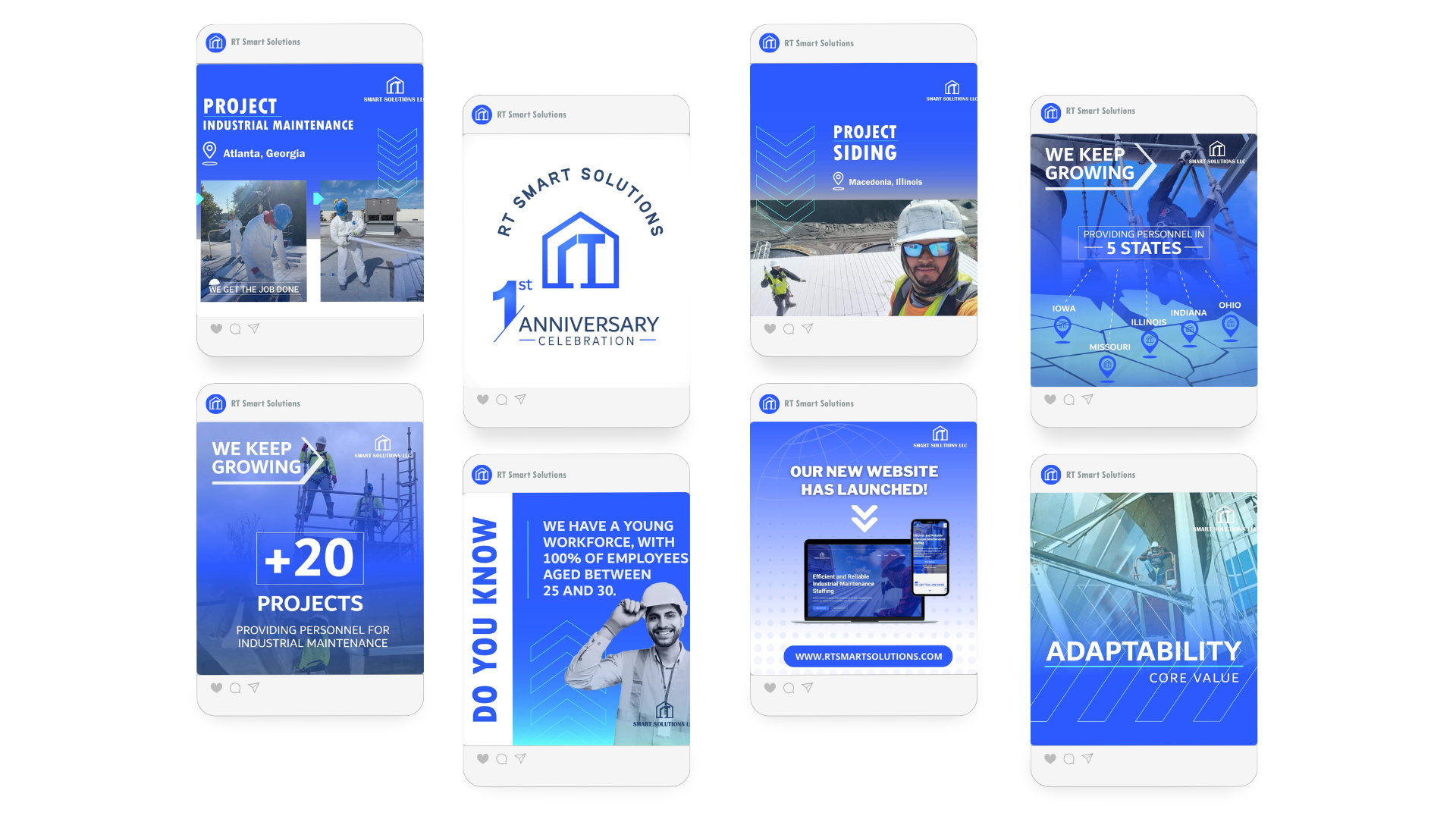 En esta sección se muestran algunos de los proyectos de Social Media realizados, que incluyen la creación de planes de contenido para distintos tipos de empresas, desde la promoción de productos alimenticios hasta el sector de la construcción. El trabajo abarca diseño, publicación y programación en redes sociales en diversos formatos: GIFs, motion graphics e imágenes estáticas.