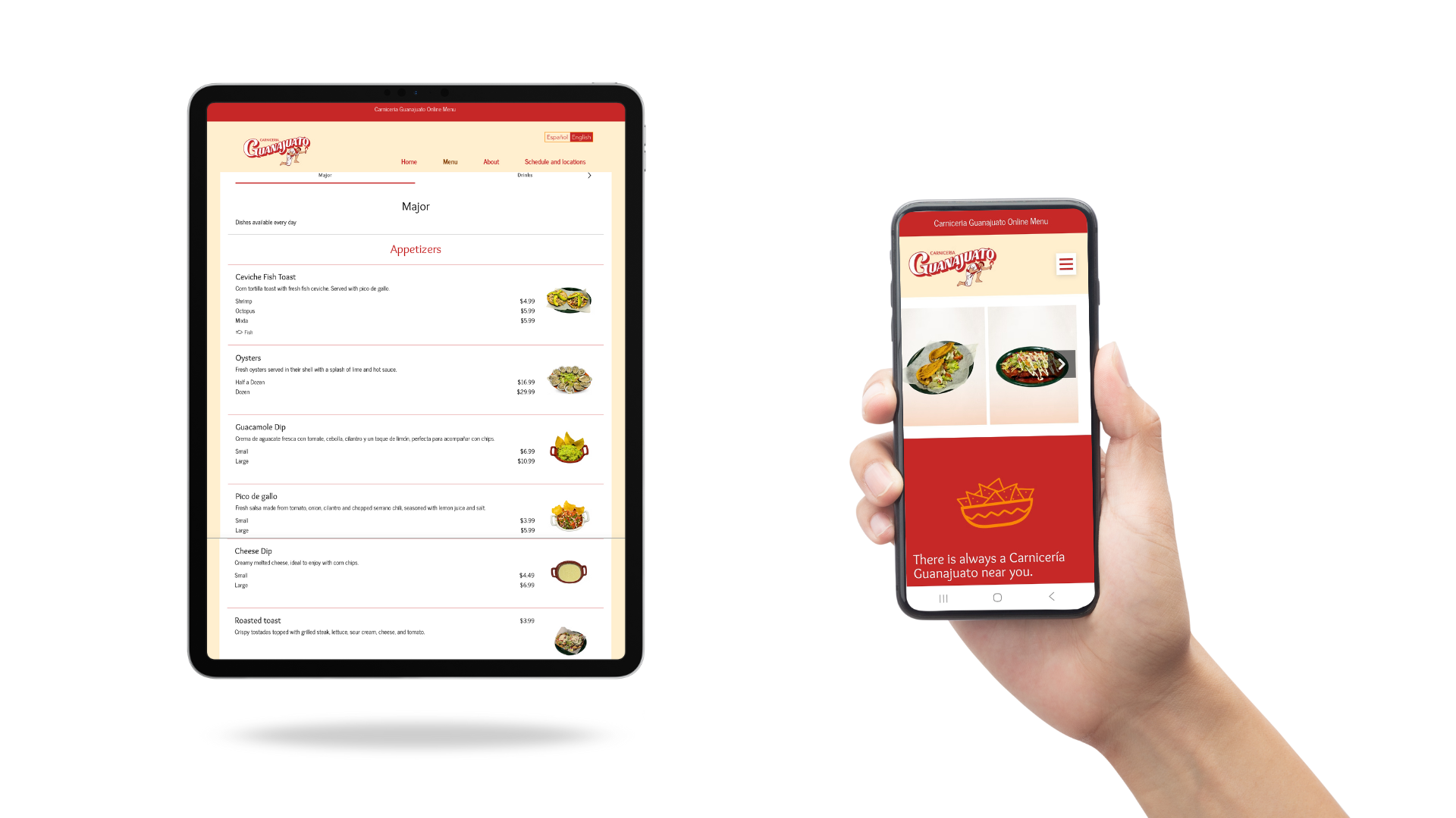 The digital menu website for Carniceria Guanajuato (www.menuguanajuato.com) was designed to prioritize mobile accessibility and ease of navigation. The platform showcases the complete restaurant menu while also highlighting the brand’s history and locations. Developed on WIX, the design delivers an intuitive and engaging experience that enhances customer interaction with the restaurant online.