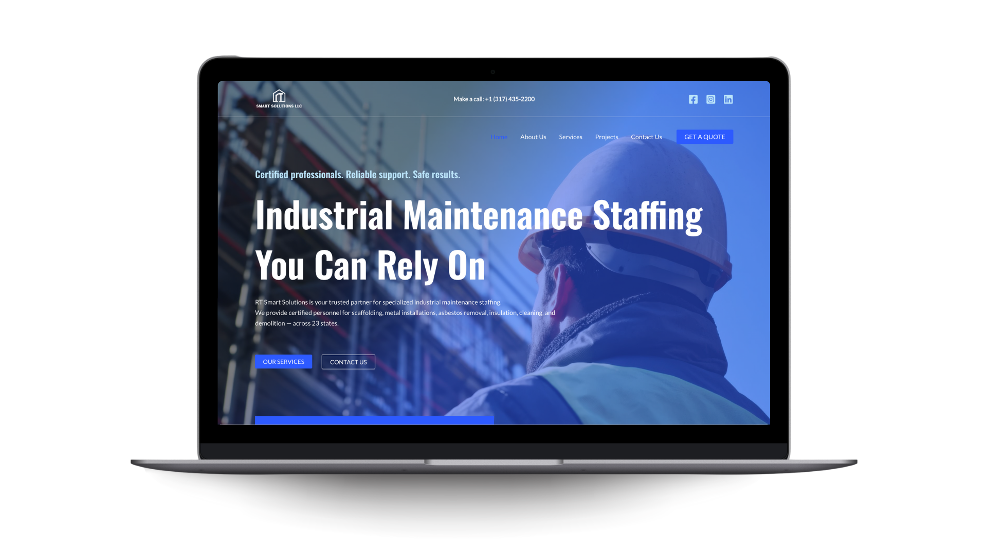 The landing page for RT Smart Solutions (www.rtsmartsolutions.com) was developed with a focus on functionality and user experience. The site enables visitors to request quotes, apply for job opportunities, and connect with industrial maintenance staffing services. Built on Elementor, the design features a clean, intuitive interface tailored to the company’s operational needs.